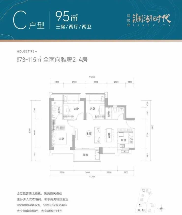 产品面积段:建面约73-115㎡全南宽奢2-4房