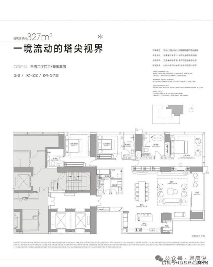 首推T3栋约123套面积304-327--402-570-1032㎡户型,304㎡做2房3卫+家政套间,327㎡做3房4卫+家政套间,402㎡做4房4卫+家政套间,500-1032㎡户型图暂未出来。