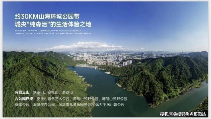 最低密的山海环城公园带:三山六公园环绕,背靠塘朗山、安托山、燕晗山,30KM山海环城公园带,近20余万平米山体公园。