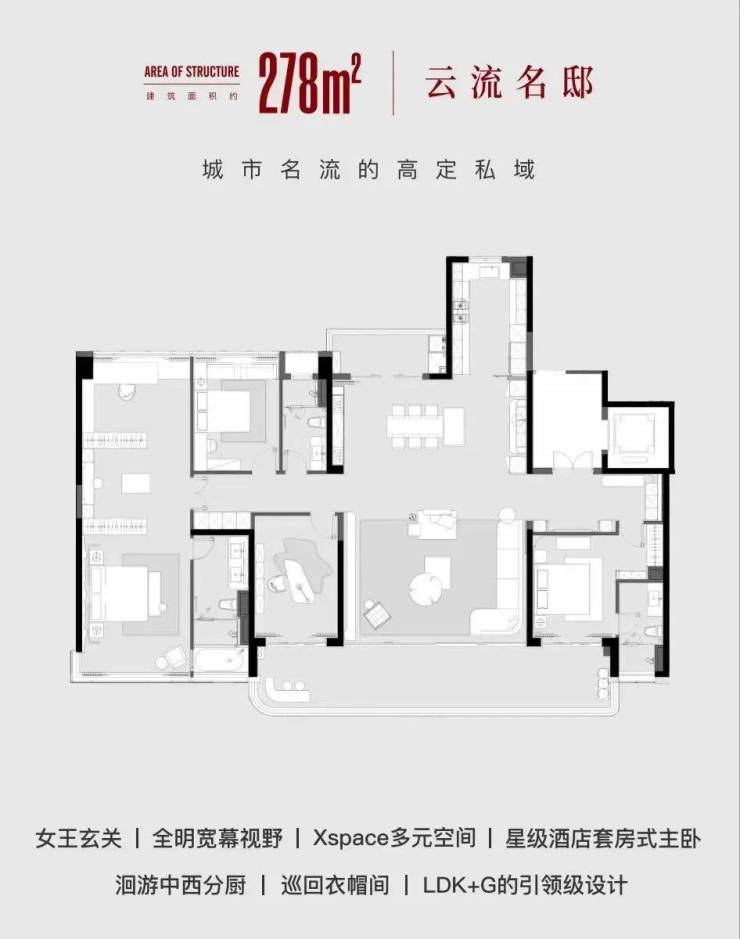 278-370㎡的环幕平层设计,带来无与伦比的空间享受,适合高端家庭。