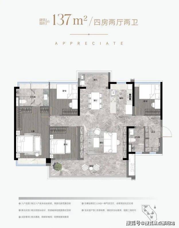 也是一个纯改善的小区,都是四房起步,一期小面积没有了,只有140以上的大面积,二期主推105/128的四房,还有货可以买,适合400-600万的买家。