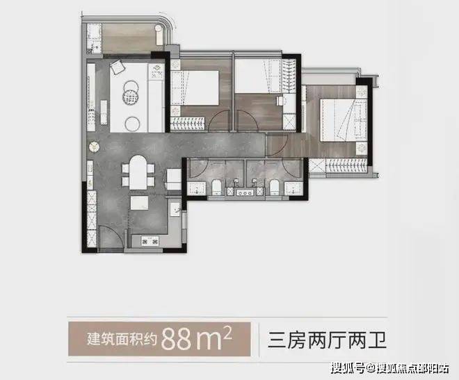 万象·荧曜88㎡ 三房两厅两卫