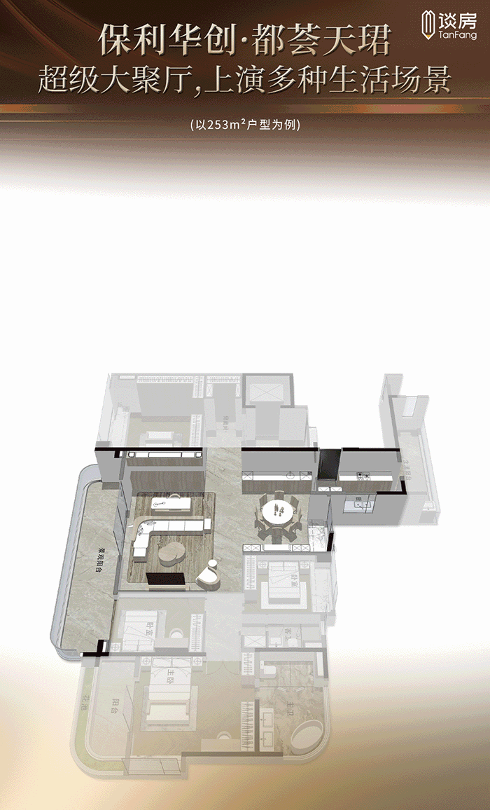深度洞悉业主对家庭社交与品质生活的追求后,项目精心打造集多元场景于一体的超级大聚厅。