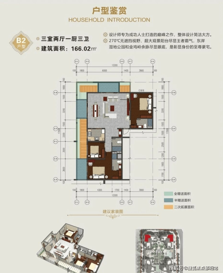 166.02㎡三房三卫(赠送31.04㎡)