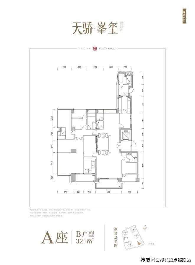 1栋A座:148米,46层,共85户,朝南为主,三梯两户,约266-321平,427平(顶复)
