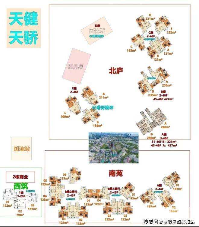 1栋B座:148米,46层,共84户,朝南为主,三梯两户,约235平,401平(顶复)