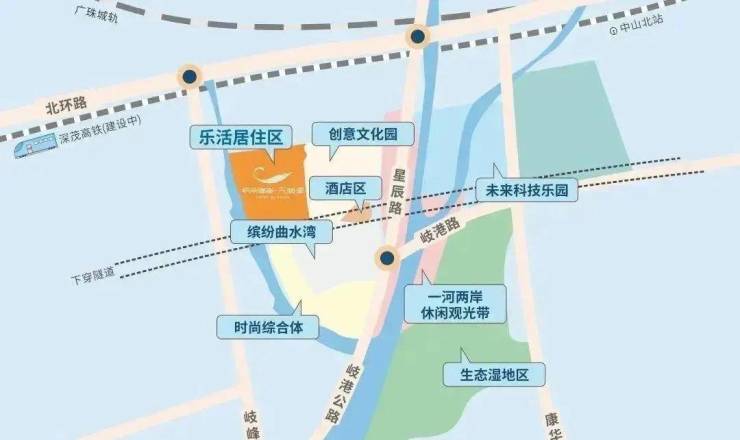 中山华侨城欢乐海岸将发挥“一河两岸”自然生态景观和丰富水系的天然优势,为中山打造一个集文化、旅游和商业于一体,全业态“文化+旅游+商业+娱乐+生态+居住”为一体的旗舰文旅综合项目,预计2023年后建成开放。