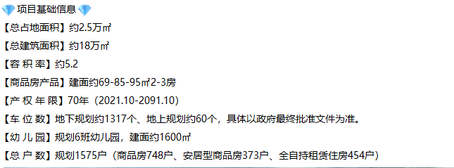 项目由6栋高层住宅围合式组成,总户数1592户,其中可售商品房约750套,安居房373套。1A(46层)、1B(46层)、1C(47层)为可售住宅,1D为安居房,1E为商寓,1F为自持物业。