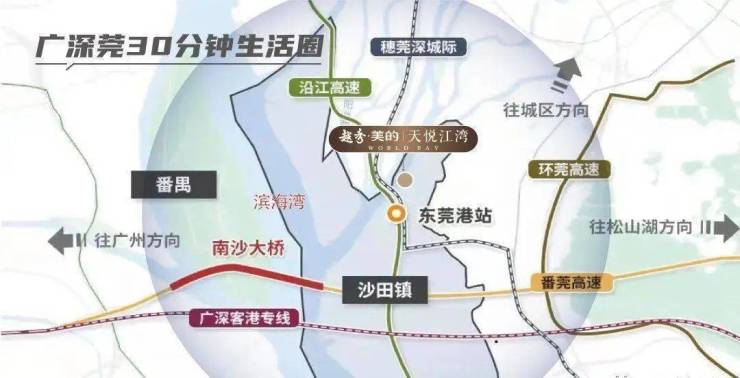 四干道:沙田大道,起始厚街,途径沙田,30分钟直达虎门;港口大道,串联沙田,30分钟到达南城;家具大道,10分钟一路直达东莞厚街;莞太路,