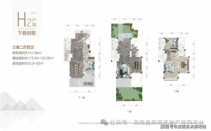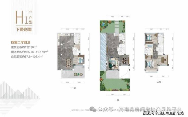 122-188平上下叠,使用面积300平左右,院子50-100平