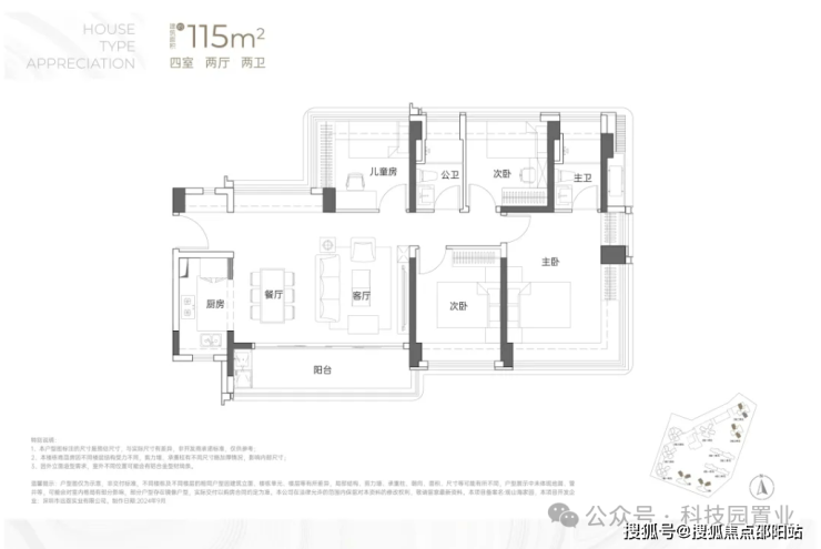 建面约115㎡4房2卫
