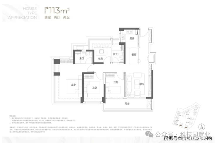 建面约113㎡4房2卫
