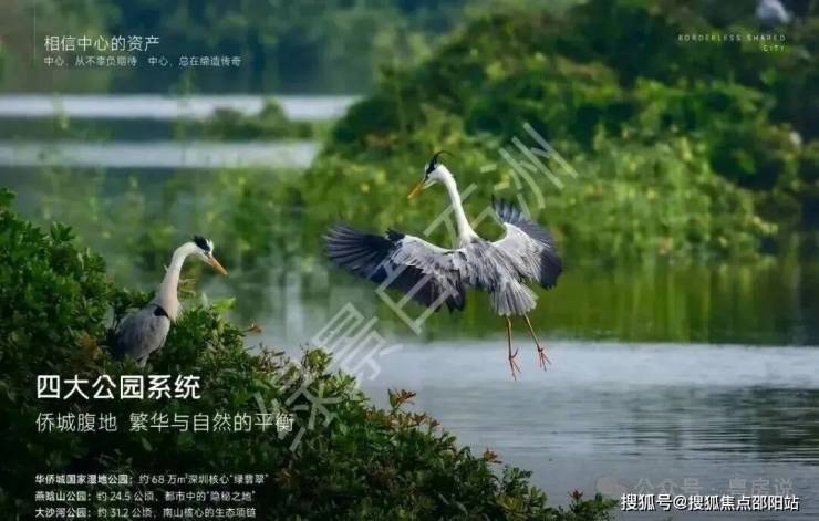 约3.4平方公里中央公园、约24万m2燕晗山郊野公园、约68.5万m2华侨城国家湿地公园、深圳湾超总十字生境、绿景白石洲约1.2公里中央绿轴,约15km滨海长廊,与华侨城三大主题公园,共同组成深圳超级公园带,每一次呼吸与远眺,都有来自国家级生态保护区的气息。