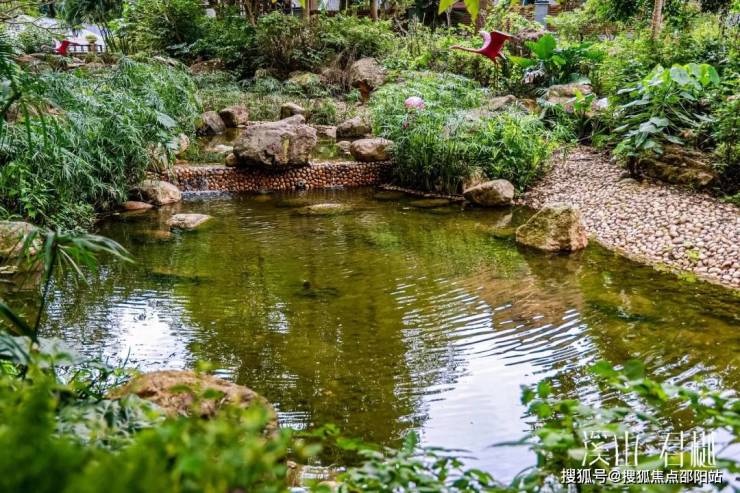 项目内部打造了一条沿着台地蜿蜒的溪流,该水系为市面罕见的活水溪流,贯穿整个社区园林,依据溪岸的曲直不同和地形变化,打造叠水、溪流、瀑布、水潭等多样特色水景,溪岸植物种类繁多,与水流互为风景,沿岸专门设置不同的亲水平台,营造自然灵动的栖心之境。
