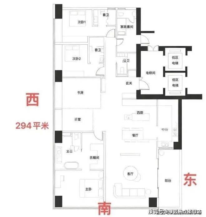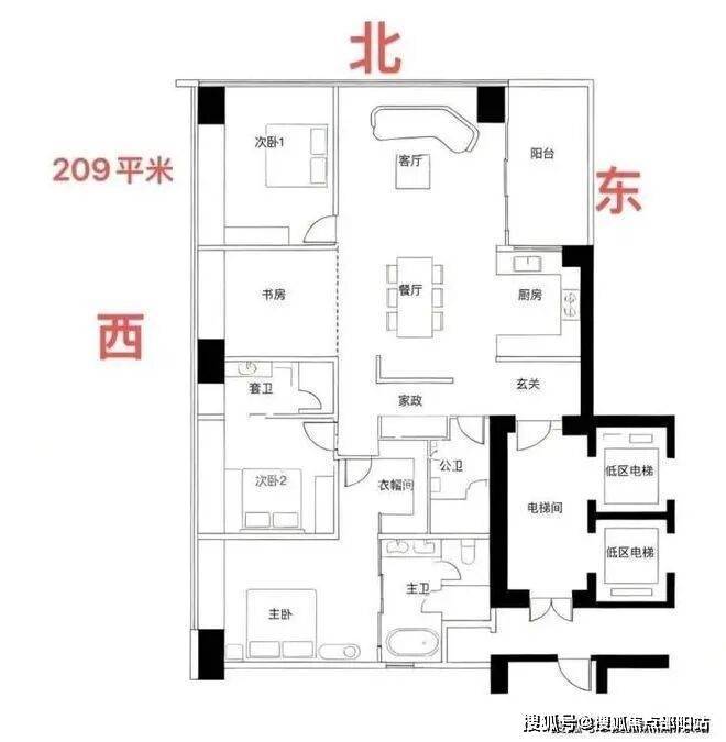 约209㎡四房三卫+家政是北区起步户型,