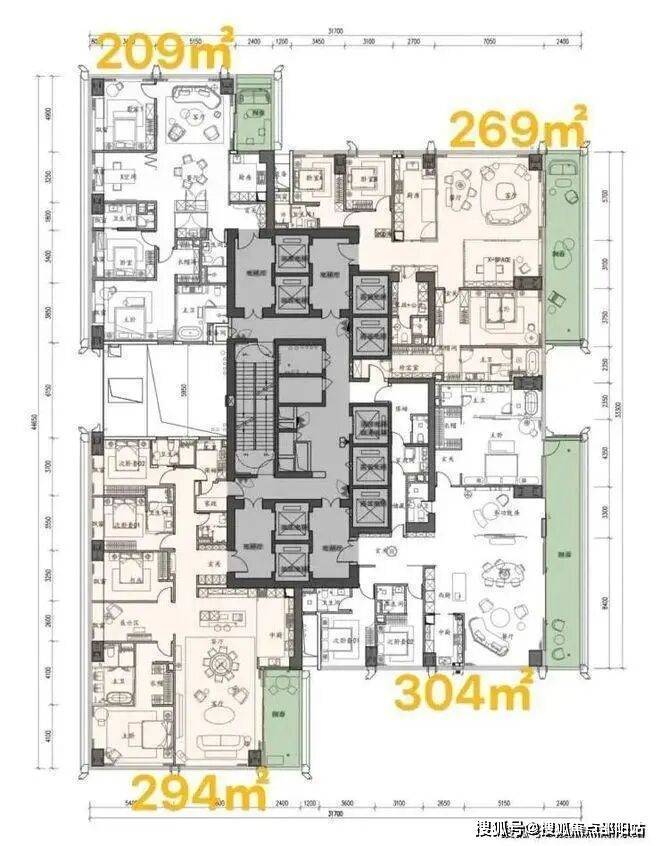 3.户型面积209平以上都有保姆房+保姆梯。