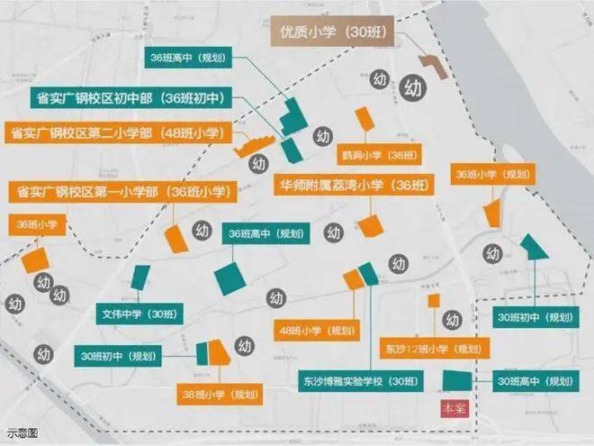 两所九年一贯制在旁,优质中学环伺约1公里规划有两所九年一贯制学校,并且广州市第四中学、广州市西关外国语学校、广东实验中学、广东广雅中学初中部、广州市荔湾区金道中学(真光中学托管)五大学府林立。