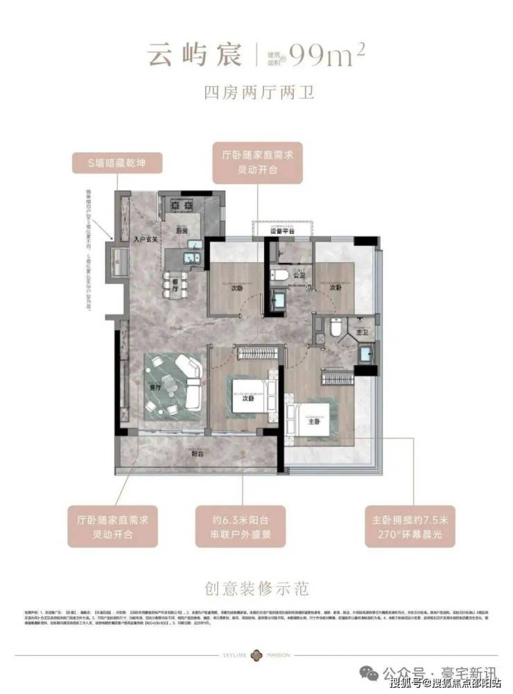 建面约83-133㎡3-4房宸式美学新著,LDKB巨幕方厅,跑道式景观阳台,小家化星级酒店主卧套房,270°环幕全景舱,客厅次卧无剪力墙灵动设计,实现超高实用率,每一户皆是颐安“超新一代作品”的匠心宣言。