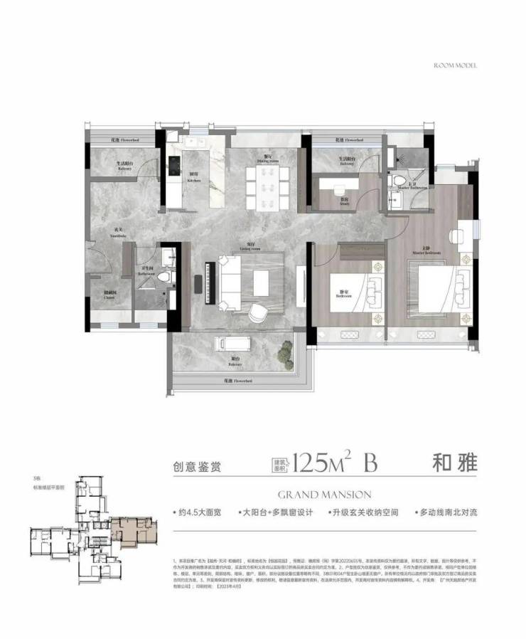 景观阳台尺度提升到面宽近9米,进深约2.4米。延长阳台拓宽套房,更能满足小孩年岁增长后,对私域空间愈发强烈的渴求。