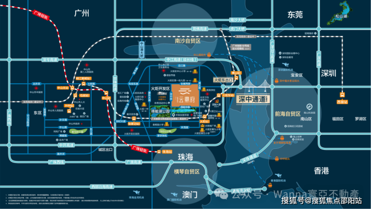 中山东部将以深中通道为引领,未来五年中山将投入1500亿元,推进超20个交通项目。项目坐拥五维立体交通,融入粤港澳1H生活圈: