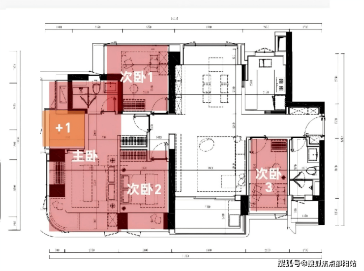 双龙抱珠户型,每个房间的尺寸都还可以,主卧+1处阳台可以改做一个房间。