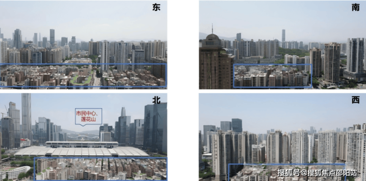 (航拍景观(100m):东南西面都是待拆民房,北面远CBD及莲花山,南面高区可看皇岗公园和部分深圳湾海景。)