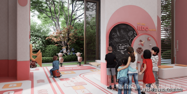 约1500平24小时运动聚落,设置羽毛球、乒乓球、儿童游乐园、成人健身器材等