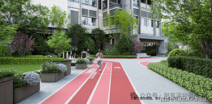 2大有氧跑道:园林中约180m元气跑道、运动场艺术跑道