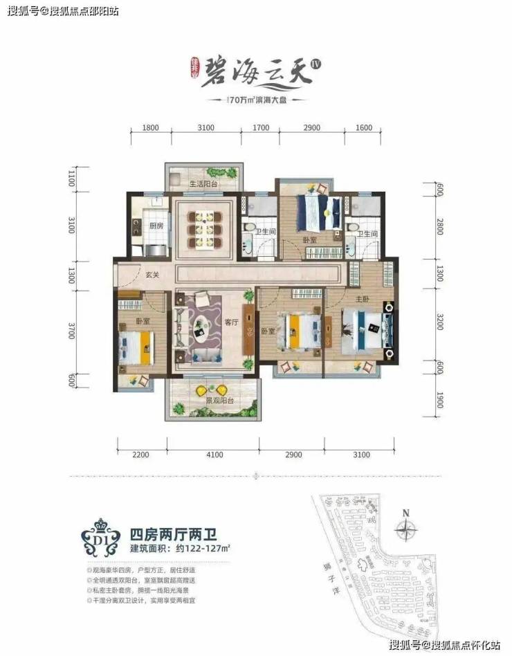 社区以海景别墅、海景洋房、星级酒店(拟计划引进)、风情商业街、精英幼儿园组成,分四期开发,主推建面约108-140㎡海景高层洋房!