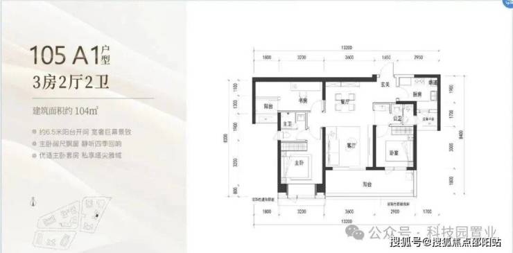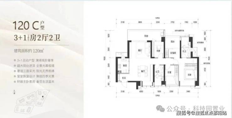 120㎡:客厅与卧室连通9.6㎡超大阳台,主卧带5.2㎡衣帽间,还有观景小阳台,主要为东南和西南朝向