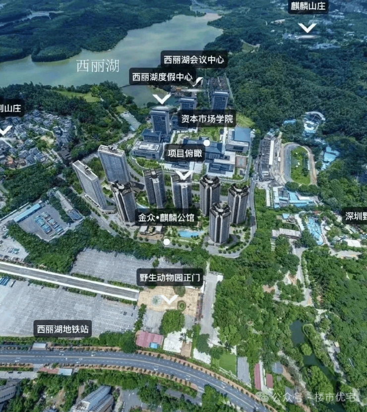 西丽湖、塘朗山、羊台山、麒麟山庄、西丽野生动物园、大学城体育中心、西丽高尔夫、大学城科技图书馆、西丽文体中心
