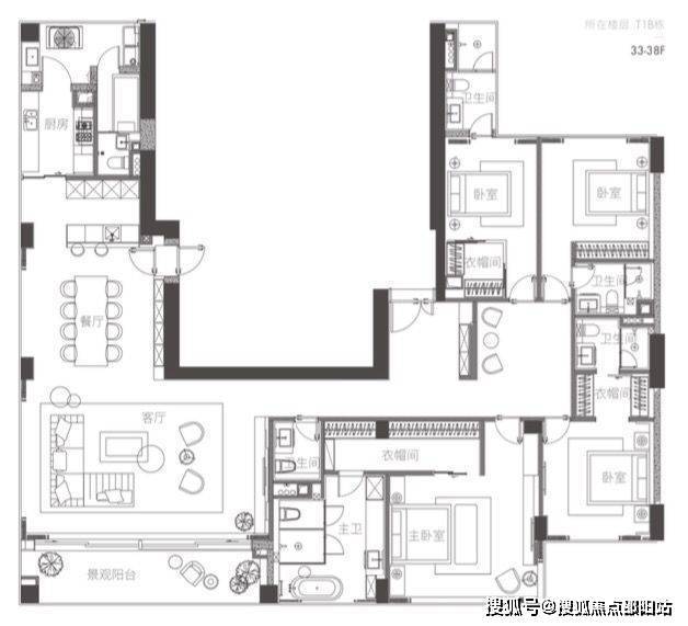 3. 主卧L形全景落地窗,270°最佳观海位。南向超大三厅一体,奢华大气。