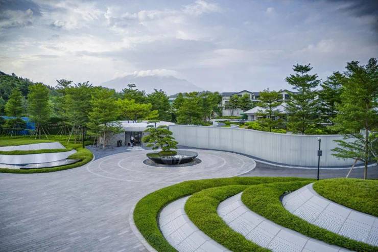 本项目景观设计概念为东方康养,归心山居。融入自然的栖居生活,源于罗浮山的自然形态。