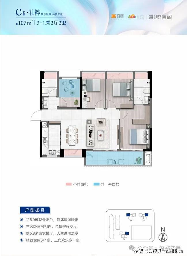 产品面积段:约87-94-107㎡三至四房