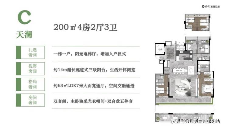 2、3套房设计,南向双主卧,超6米大面宽一体餐客厅