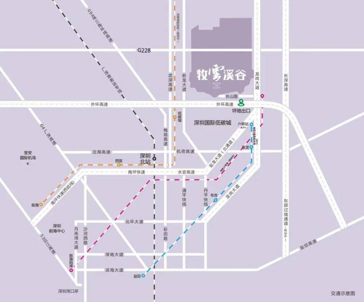 多维交通体系,通达畅行 三轨三线畅达全市,紧邻龙岗大道/盐龙大道/外环高速,30分钟到福田;地铁3号线延长线(在建中)六联站、21号线(规划中)吉坑站仅3分钟车程,深惠快轨数站直达南山。