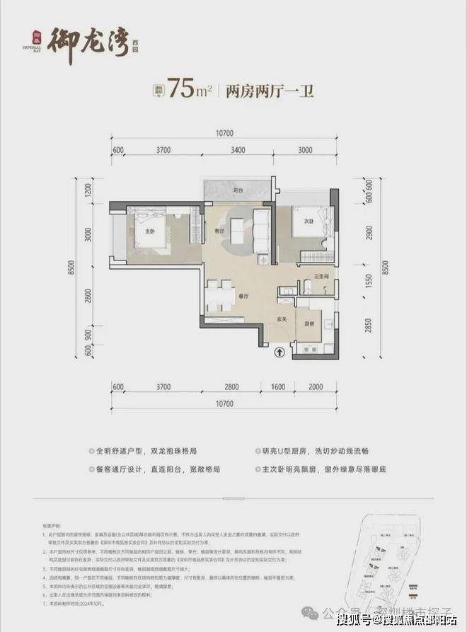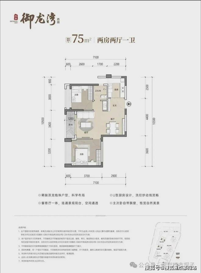 75㎡2房1卫,分布在1栋3/4单元01/08户型,设计的是竖厅稀缺的双龙抱珠格局,客厅开间3.4米,U型厨房,卫生间三段式分离设计!
