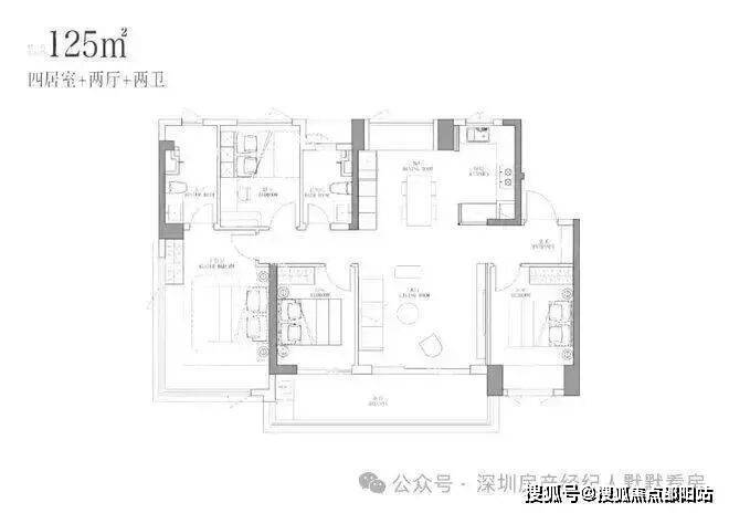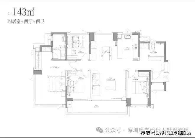 竖厅方正大面宽格局,进门入户玄关,客厅7米开间,LDKB一体化设计,超大客厅+餐厅位,还有东北侧超大飘窗景观面,动静分区,三开间朝南,主卧做到了270度转角无柱飘窗,U型厨房,卫生间干湿分离,得房率约93%(包含赠送),客厅正出7米长的超大观景阳台,全部东南朝向,看大运中心+大运公园景观。也可以做5房设计。