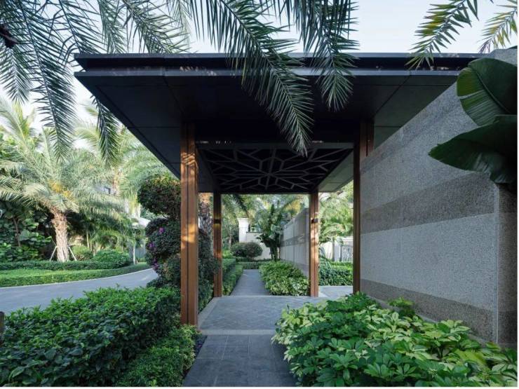 旅居度假别墅应当具备的三重户外生活场景,在本案都一一呈现:庭院、大露台、灰空间。夏日三亚日照较为强烈,但阴影下则舒爽宜人。因此在户型设计上,部分户型南北面均设置了连廊灰空间,便于纳凉防雨。