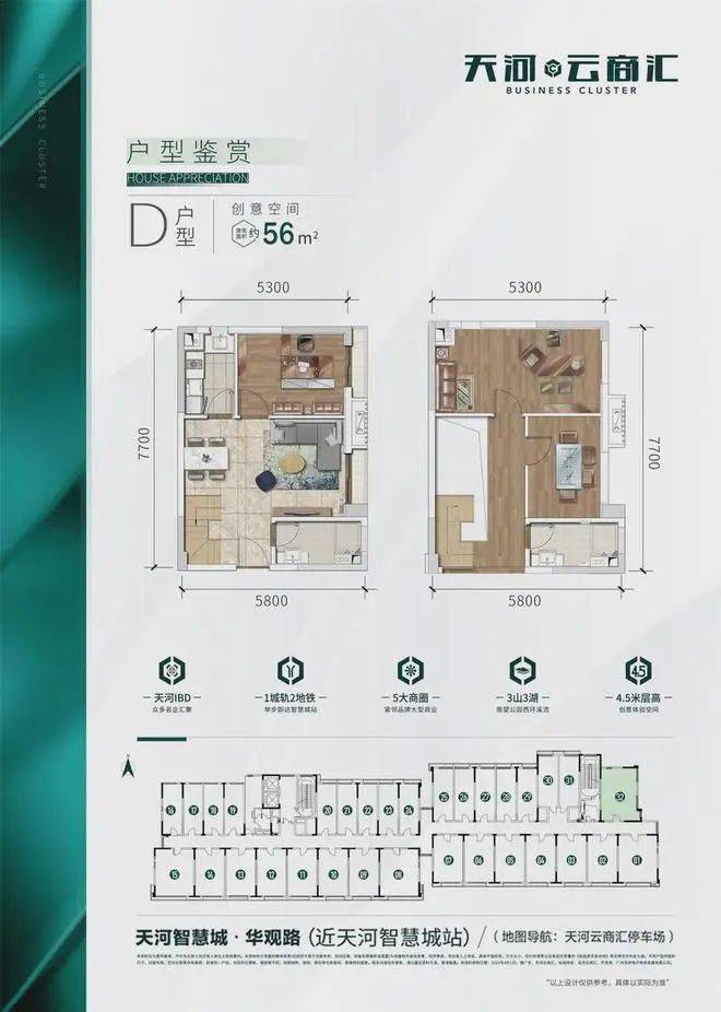 天河云商汇,位居天河智慧城芯,南侧为占地7.5万㎡的万科广场。