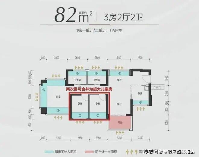 『建面约82㎡3房2厅2卫(06户型)』