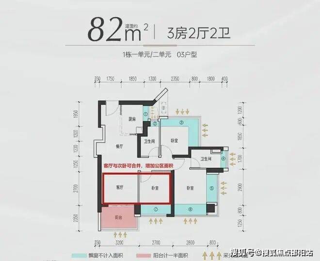 『建面约82㎡3房2厅2卫(03户型)』