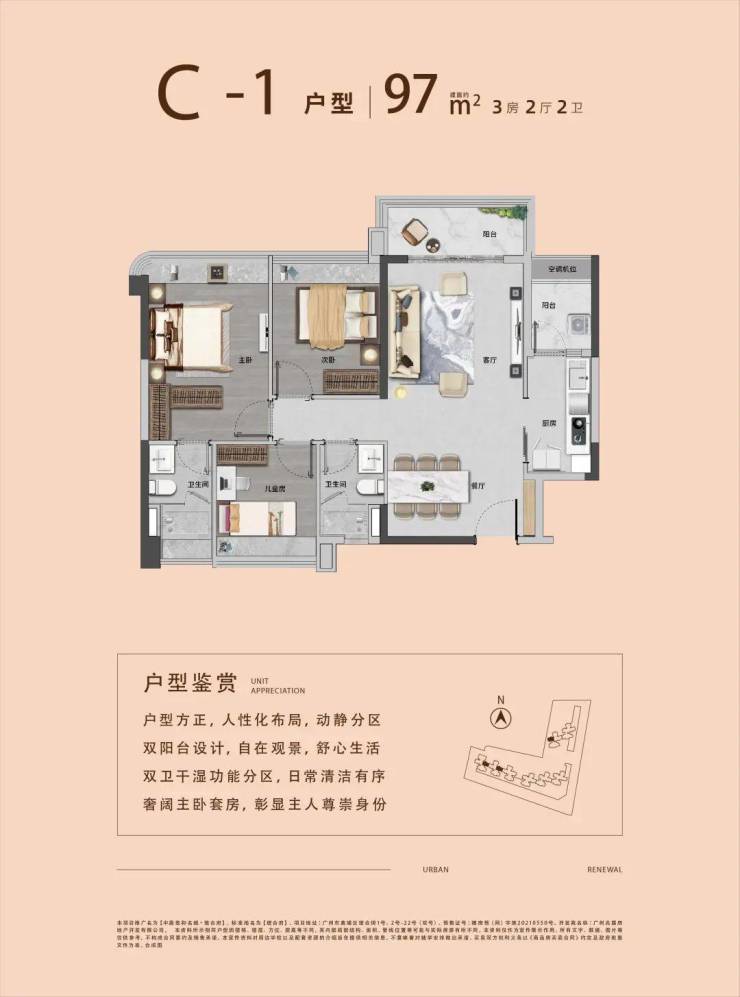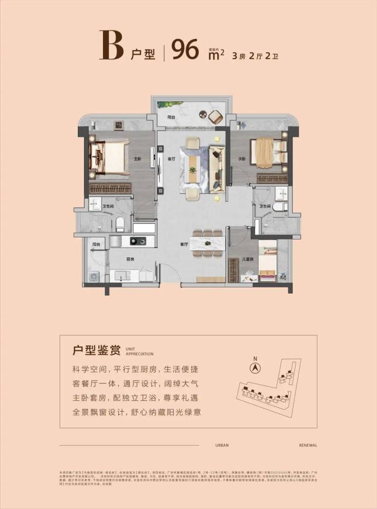 产品建面约86-130㎡三至四房,L型建筑布局,超宽楼距,采光充沛。