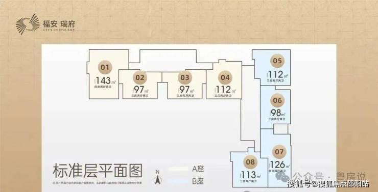 福安瑞府户型图已经公示,主推建面约97-98-112-126-143㎡的3-4房产品。