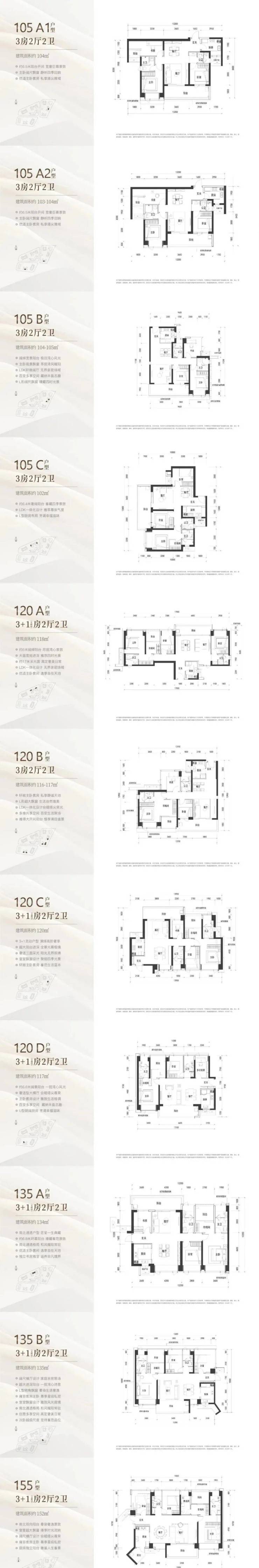 期待已久的瀚熙典居户型图已曝光,新规设计,户型面积105/120/135/155㎡3-4房,使用率近100%。