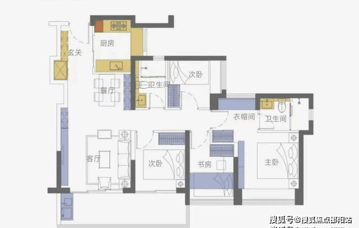 南北通透,通风采光俱佳,餐客厅、阳台一体,轻奢套卧,自带卫浴与衣帽间,更私密舒适,收纳面积超21%,东西再多,全南向四开间,户户无遮挡,约11米面宽。