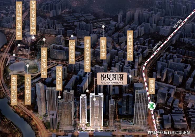 交通体系:项目为地铁4号线清湖站A1口上盖(约100米),5站达深圳北、8站至福田;周边22号线(在建)、25号线(规划)、27号线(规划)密布,快速接驳前海、南山;紧邻“六纵三横”路网(含沈海高速、福龙路、侨城东路北延段等),约1.2公里迅捷接入高速,高效通达全城。