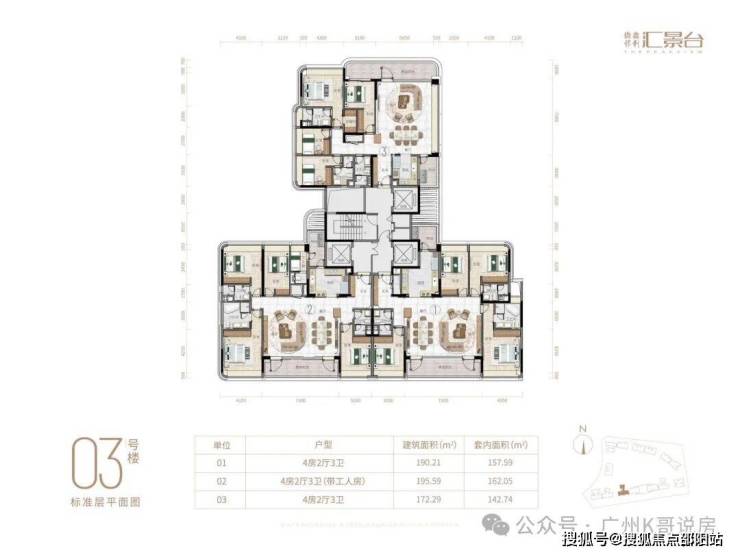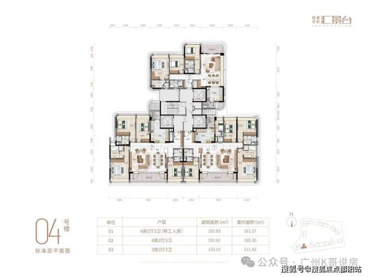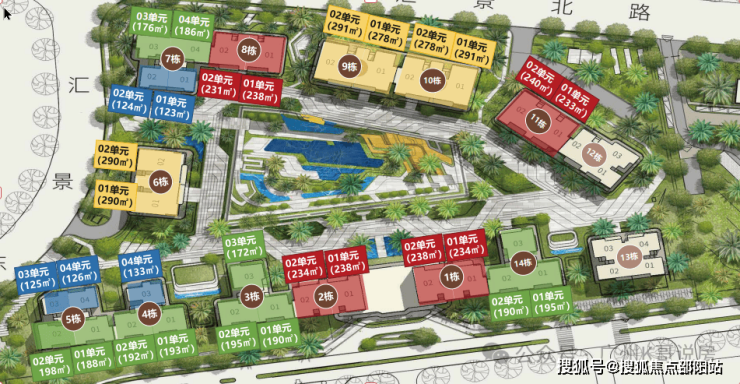 项目由14栋12层小高层组成,产品涵盖123-352㎡三至五房,共8类户型,户型实用率约82-84%