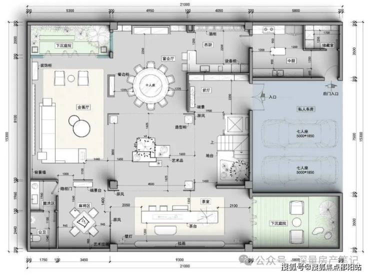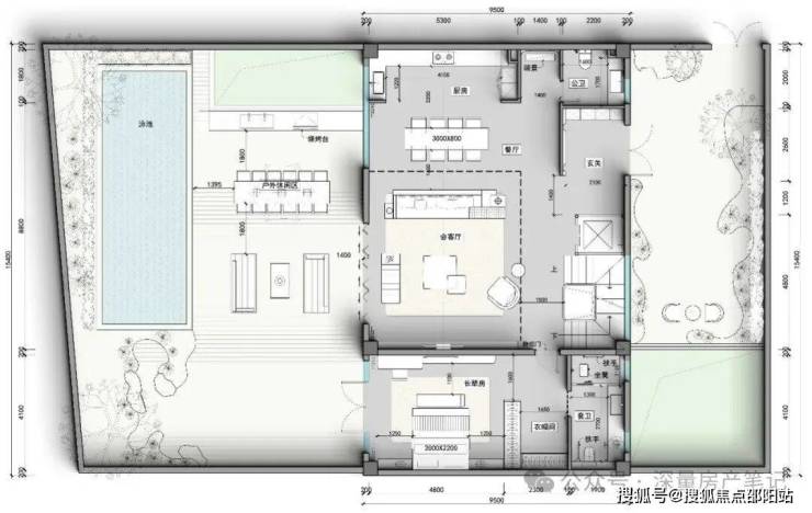 建筑面积:173㎡,5房4厅7卫+2保姆房+2车位+1庭院泳池,使用面积940m²-1280m²