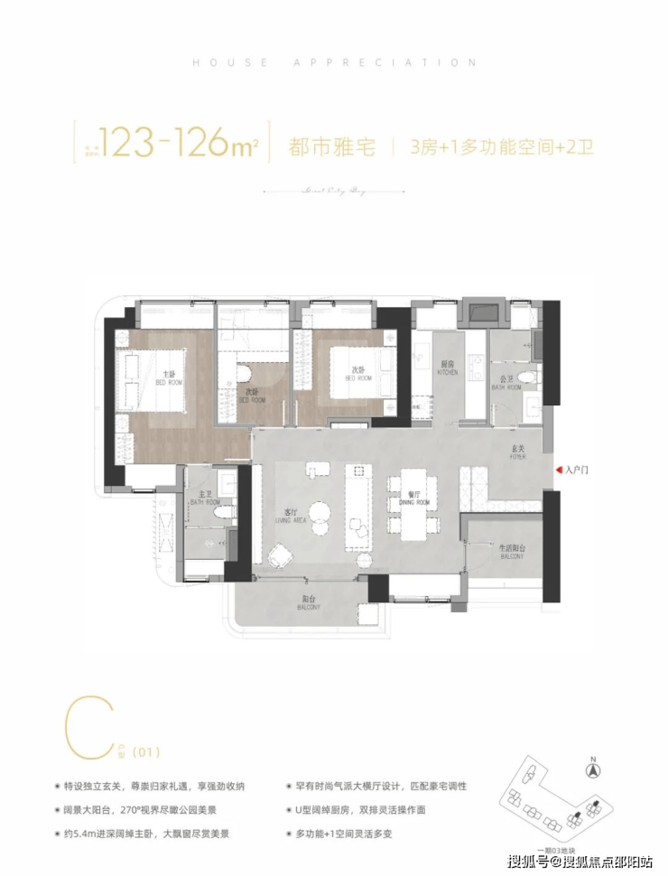 121-127㎡3+1房2厅2卫,有竖厅、横厅和双龙抱珠户型。